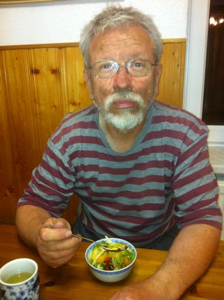 Norbert kurz vor Mitternacht nach dem Betonieren des Randes der Radreifenanlage